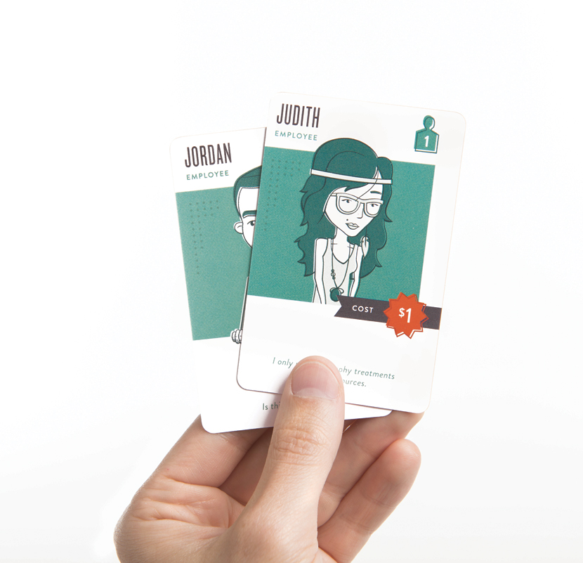 The game features 160 custom illustrated cards that feature various things, from employees, to jobs, to mayhem and rewards. The basic gameplay cards have the following: