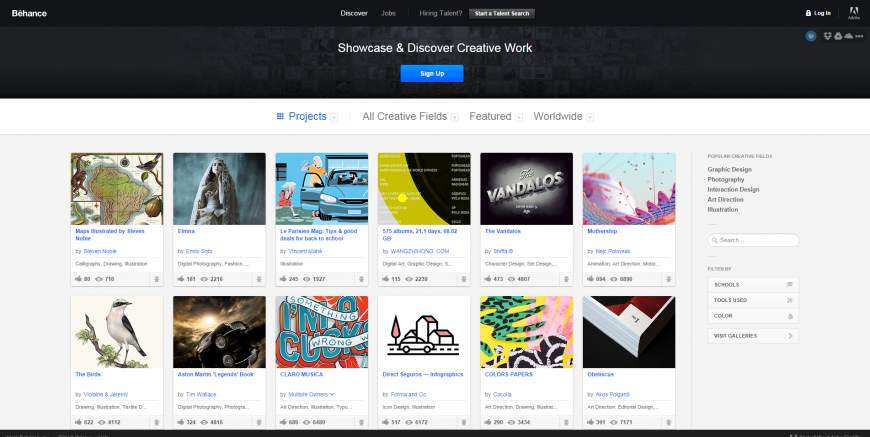 On Dribble, more than sharing screenshots of designers’ works, process, and projects, it also allows users to discover, follow, and hire other creative talents. Similar to Cargo Colletive, membership for Dribble are by invite only, which can be acquire by uploading screen shots or leaving comments. And to be able to qualify for invitation, their account must be marked as a ‘Prospect’.