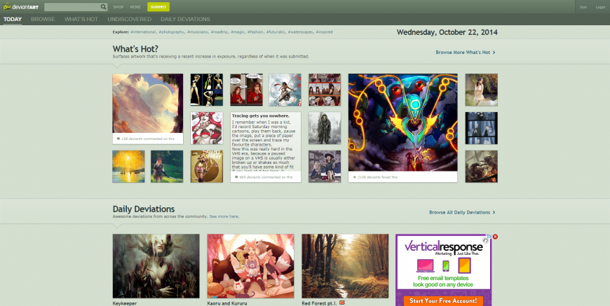 To quickly establish your web presence, Crevado is the platform to choose. It is also free and easy to use. Customized design templates are already available for use, all of which are responsive and adapt automatically to fit any screen size. The platform also uses the drag-and-drop technology to easily upload your files. Looking to sell your artwork online? It is also possible with Crevado, via PayPal integration. - deviantART
