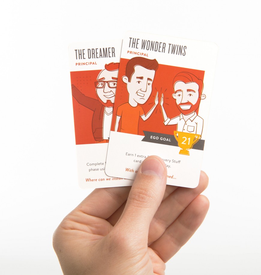 The game features 160 custom illustrated cards that feature various things, from employees, to jobs, to mayhem and rewards. The basic gameplay cards have the following: